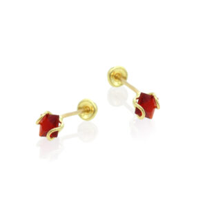 BROQUELES ZIRCONIA MINI SOLITARIO #1 ROJO. ORO 10K
