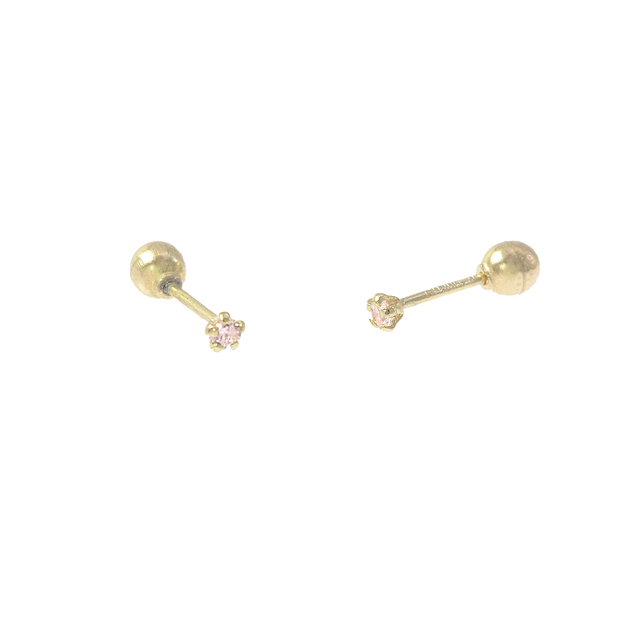BROQUELES ZIRCONIA MINI SOLITARIO #1 ROSA. ORO 10K
